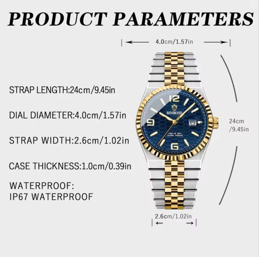 Bin bond ☑️ Original watch☑️ ✅ساعت مردانه بین باند طرح رولکس ✅کیفیت عالی ✅بند استیل ✅ضد آب ✅رنگ ثابت ✅موتور کوارتز ✅دارای تقویم روزشمار ✅تقویم تلسکوپی ✅رنگبندی فول