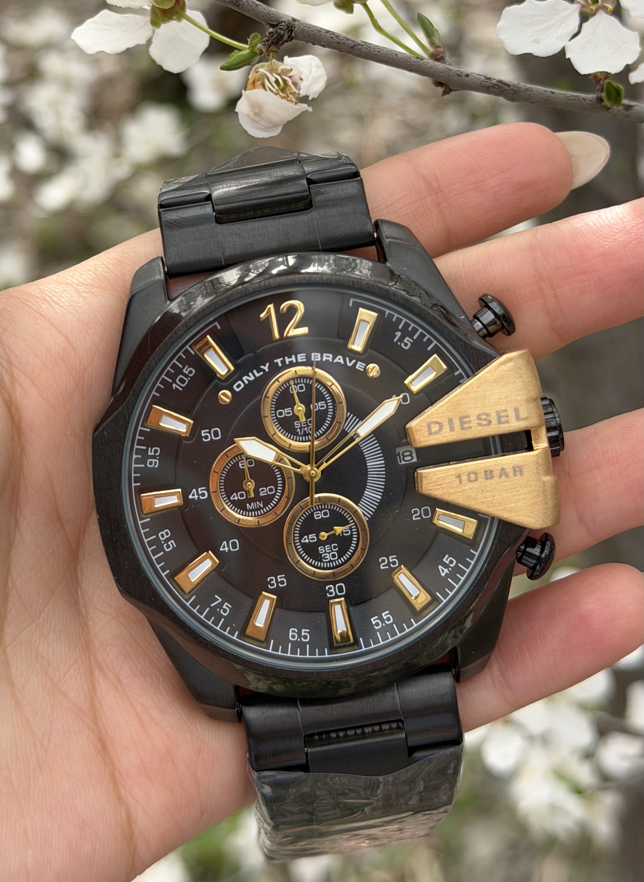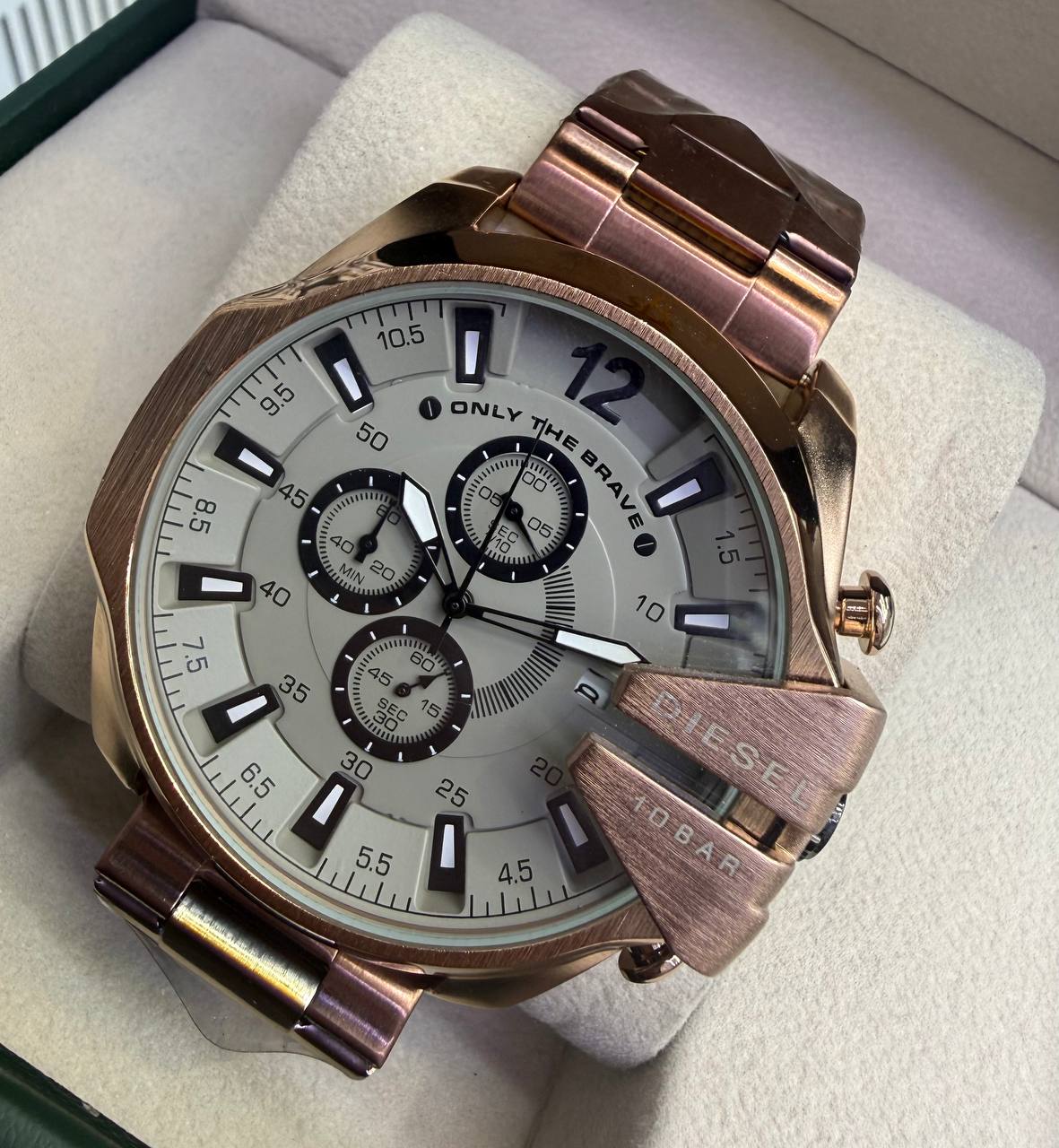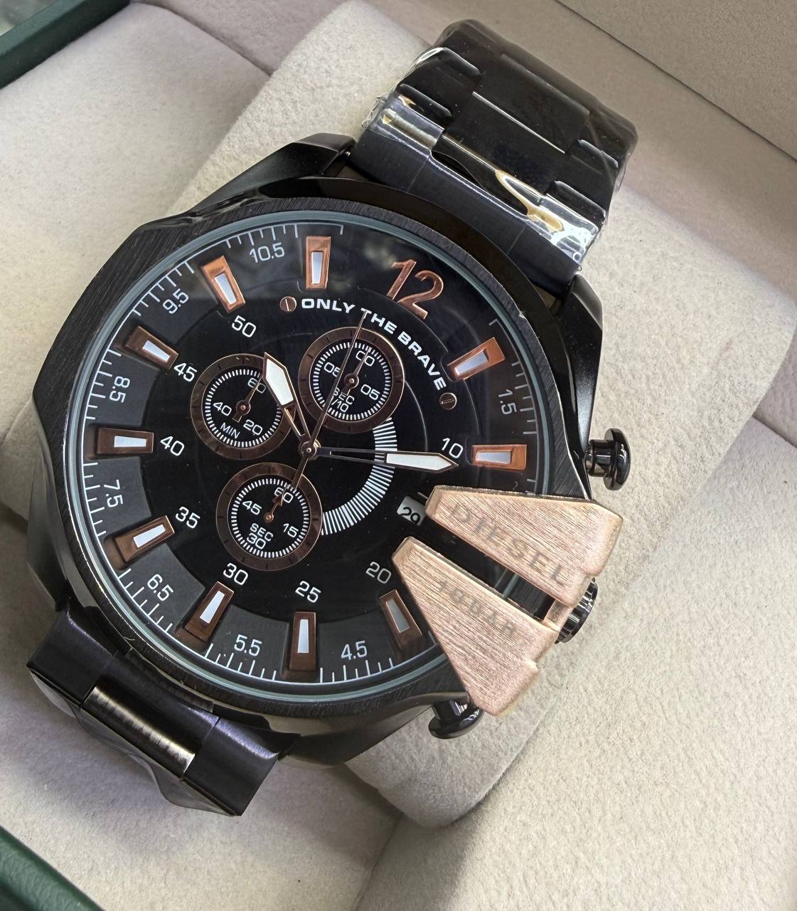 Diesel☑️ دیزل شاخ دار مردانه سه موتوره فعال کرنوگراف قاب و بند اصلی دارای تقویم روزشمار کیفیت فوق العاده دارای جعبه میزان ضد آب بودن: در حد شست و شوی دست