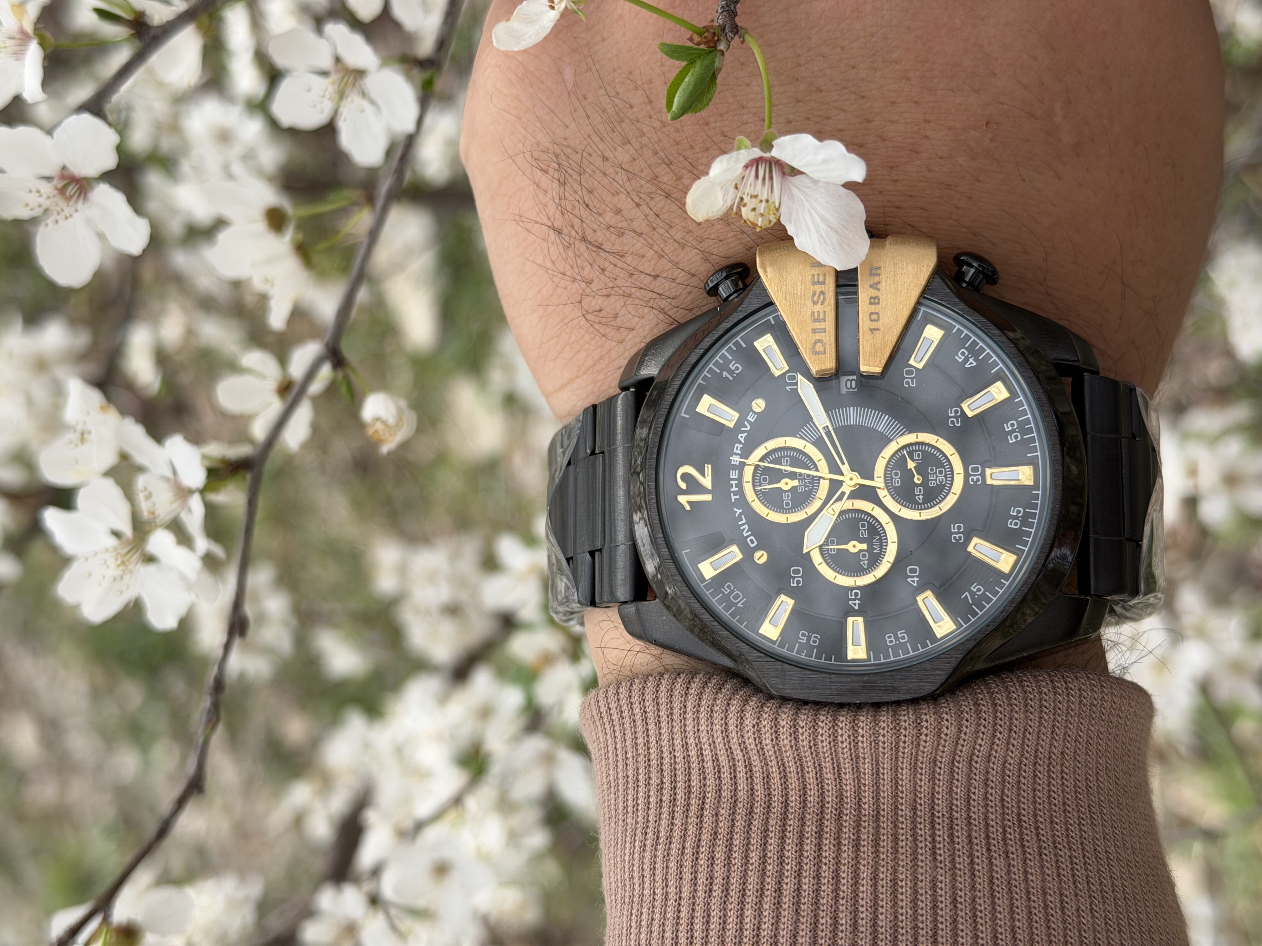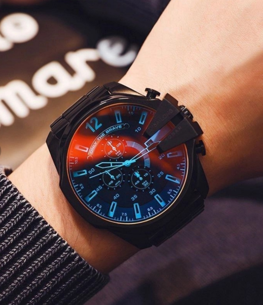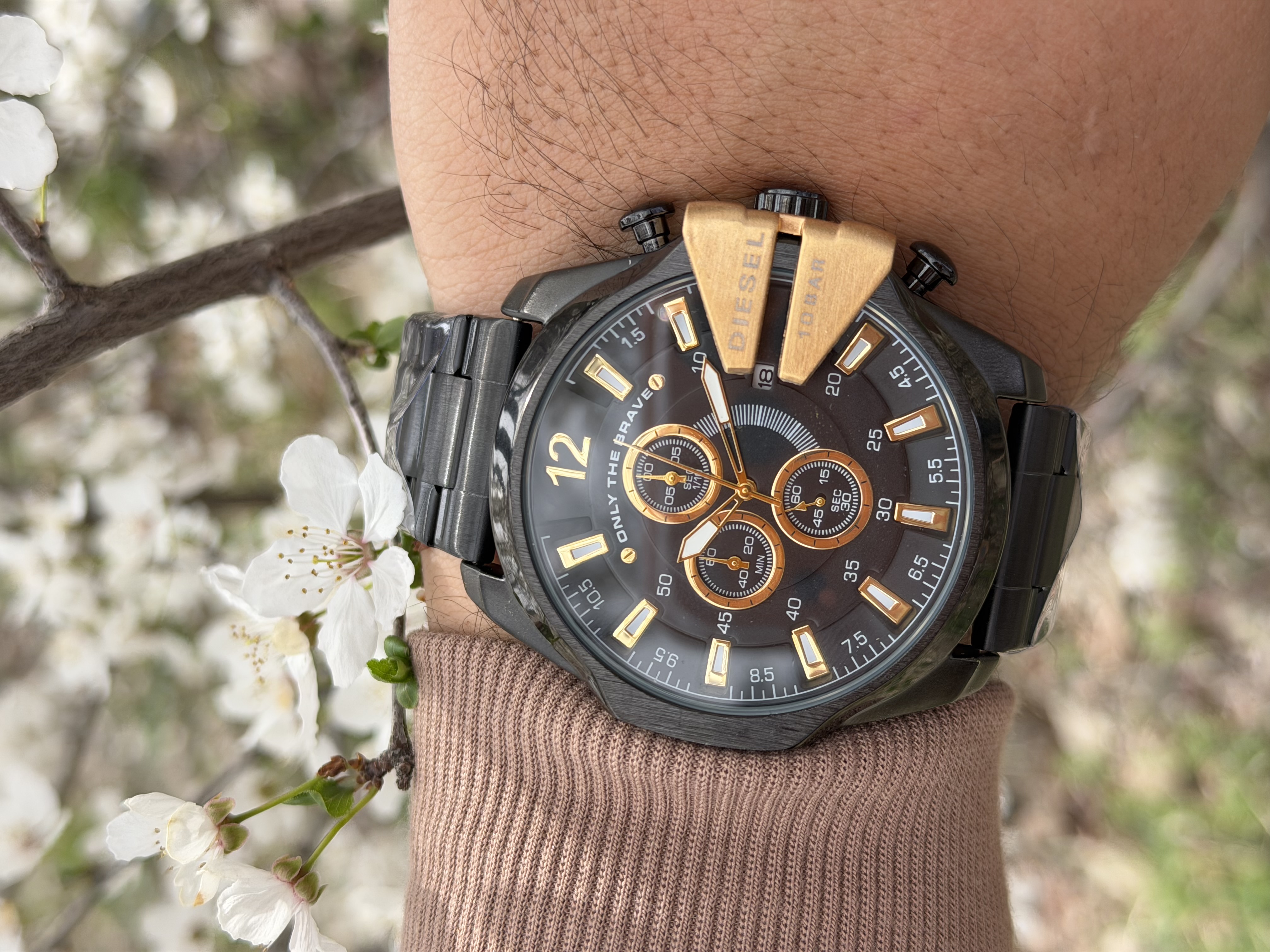 Diesel☑️ دیزل شاخ دار مردانه سه موتوره فعال کرنوگراف قاب و بند اصلی دارای تقویم روزشمار کیفیت فوق العاده دارای جعبه میزان ضد آب بودن: در حد شست و شوی دست
